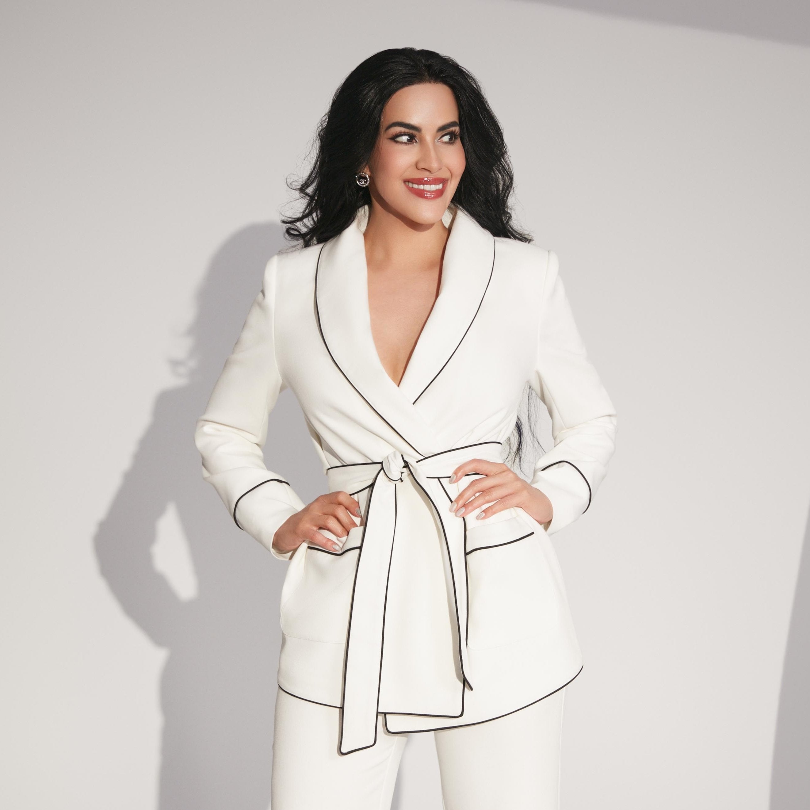 Elevate your wardrobe with the Nyla Cardigan Top, a timeless piece that combines classic elegance with modern design. This versatile cardigan is crafted from a soft, lightweight fabric, making it perfect for layering over any outfit. The clean lines and minimalist silhouette are complemented by a sophisticated belt that cinches at the waist, creating a flattering, tailored look.